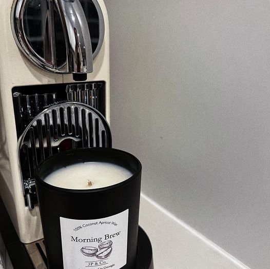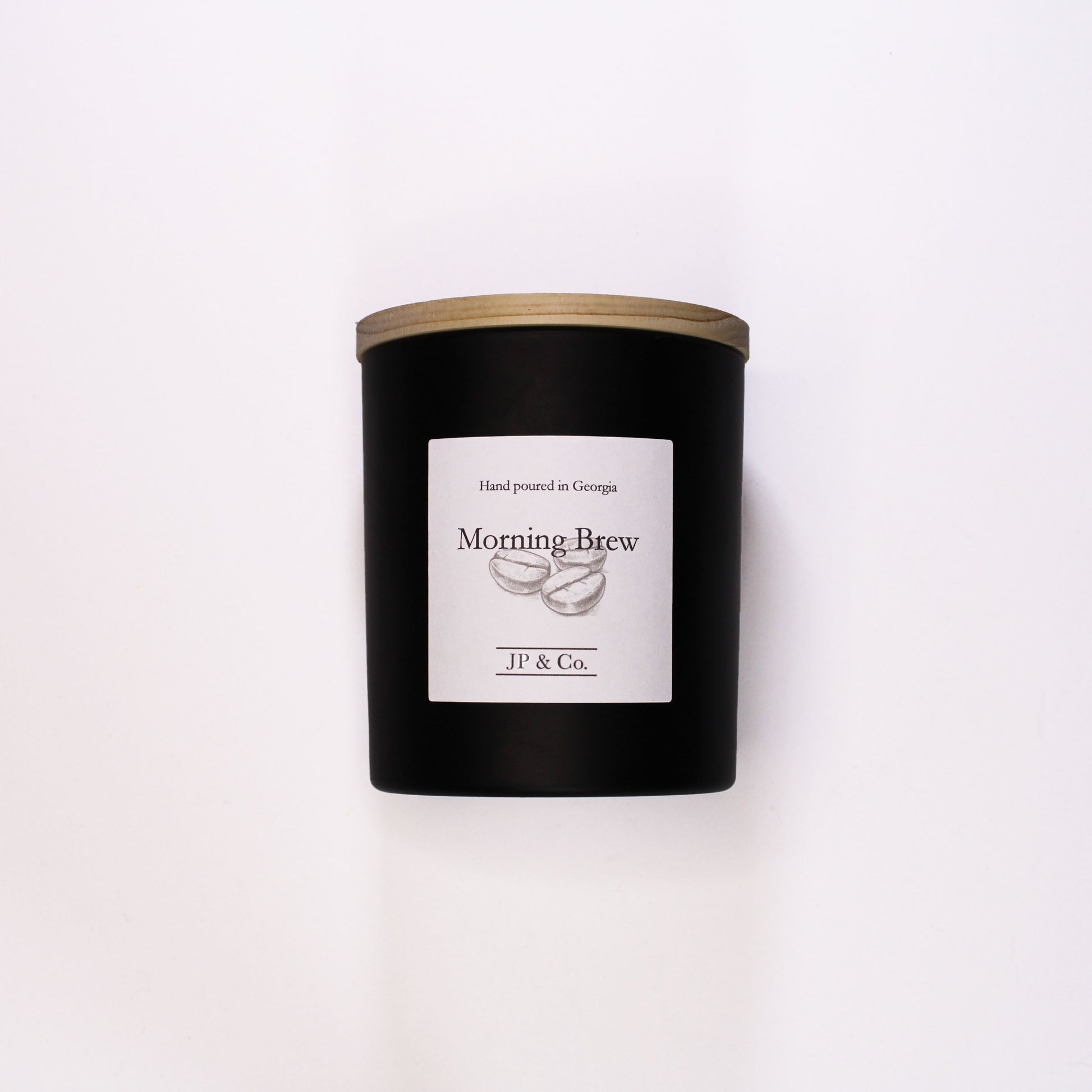 JP & Co.'s Morning Brew candle is made from notes of freshly ground coffee beans and bring warmth to the room. A drop of sugar and cream make this blend smooth.